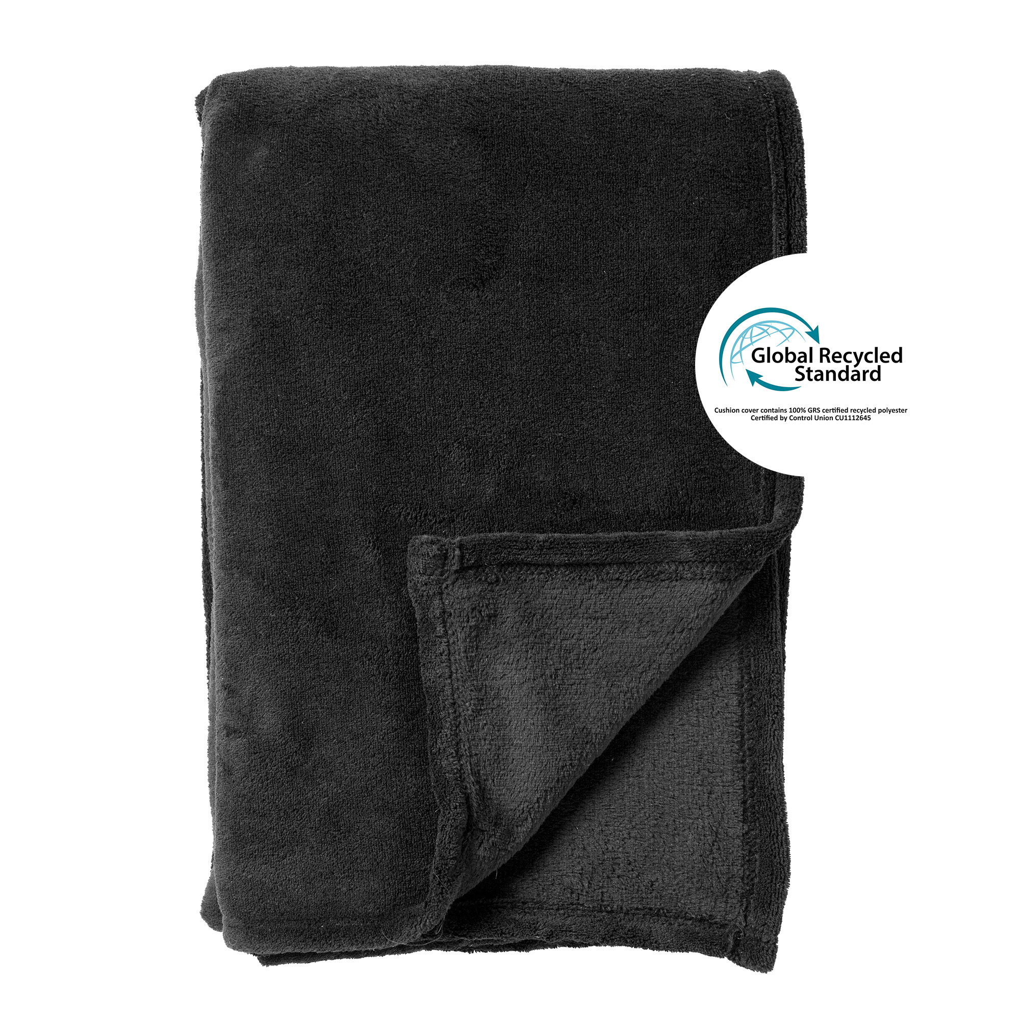 Deze fleece deken bestaat voor 100% uit gerecycled materiaal en is gecertificeerd volgens de Global Recycled Standard (GRS).