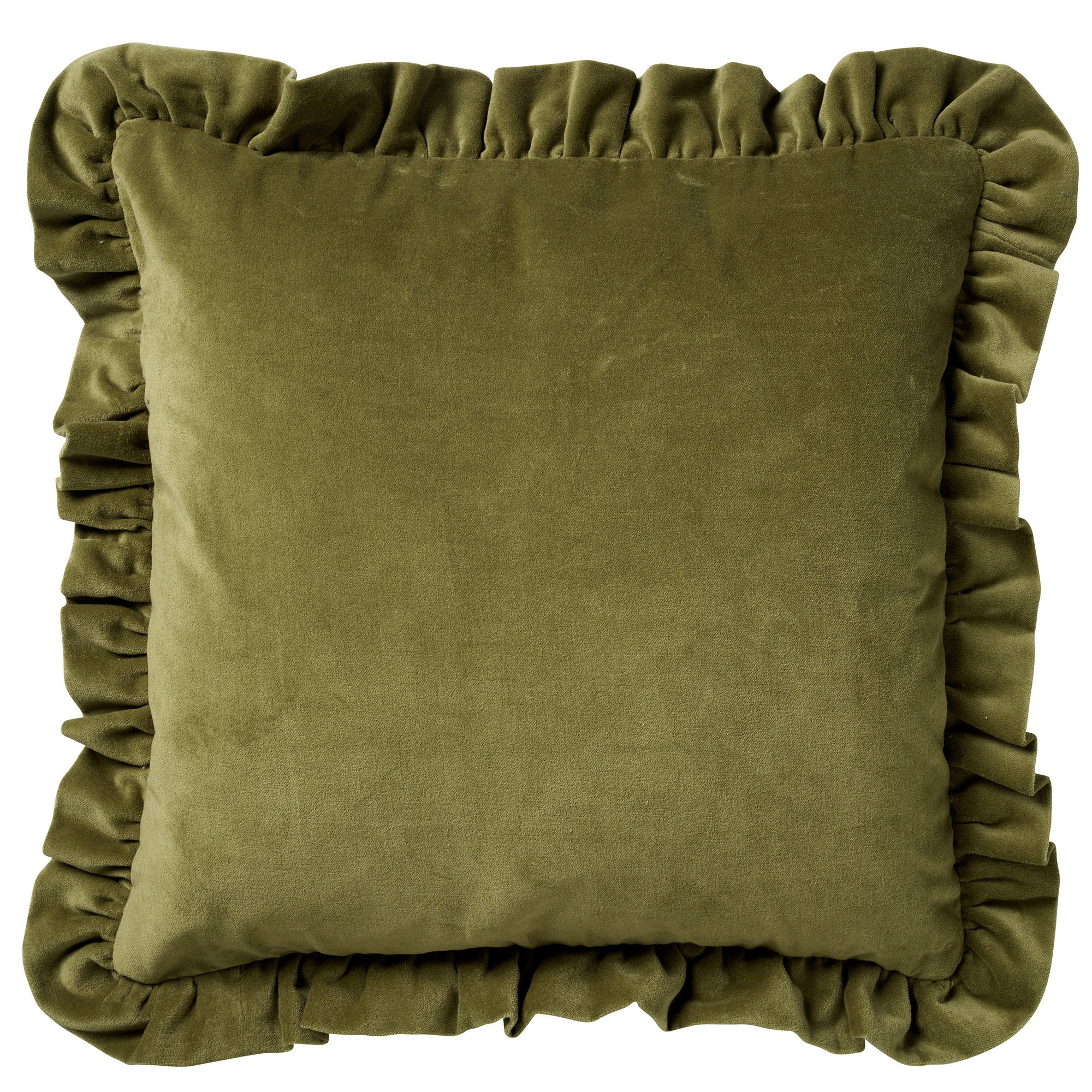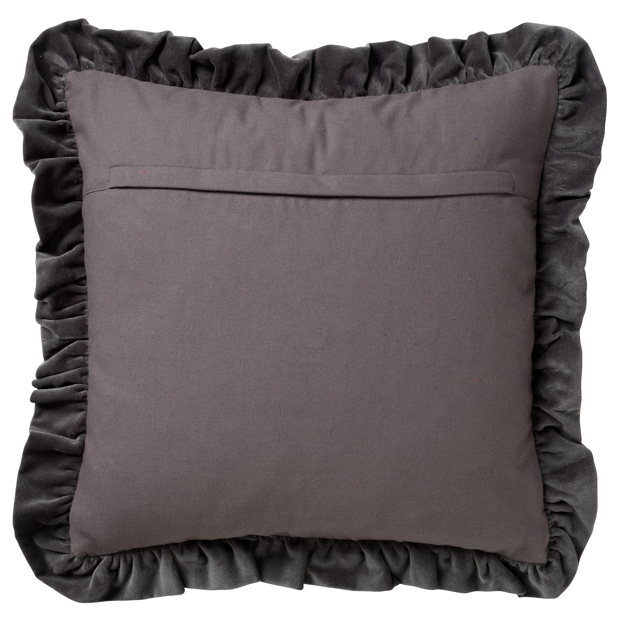 YARA - Kussenhoes 45x45 cm - 100% katoen - velvet - met ruches - Charcoal Gray - antraciet